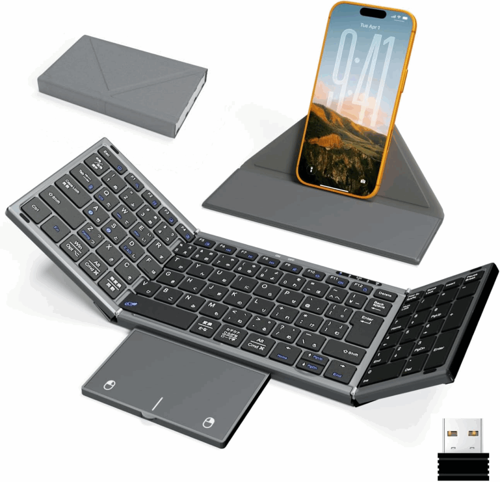 Ewin キーボード 4つ折りたたみ式 -レザー